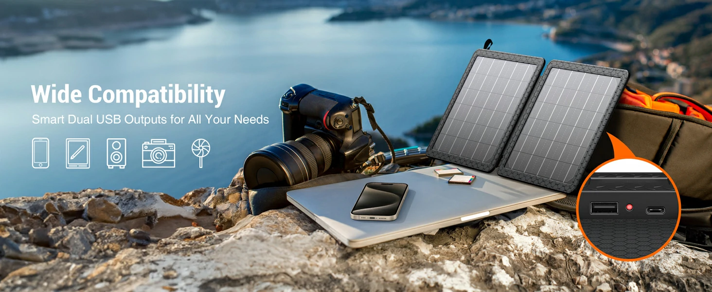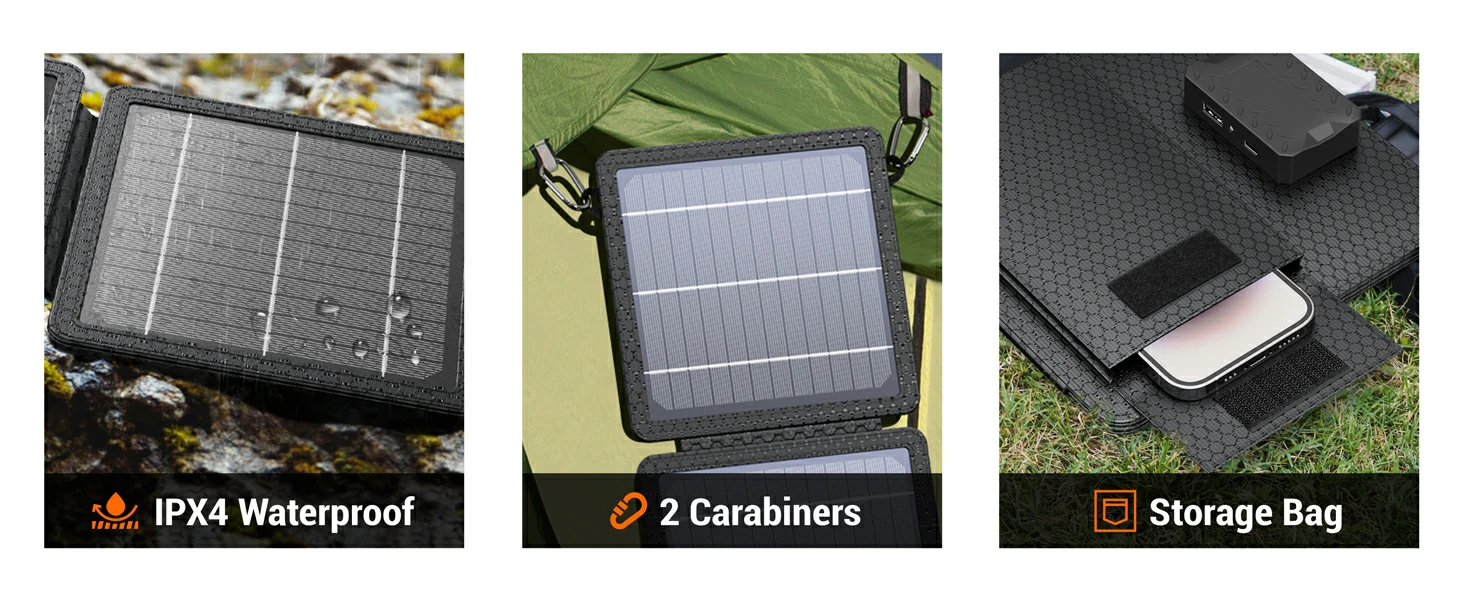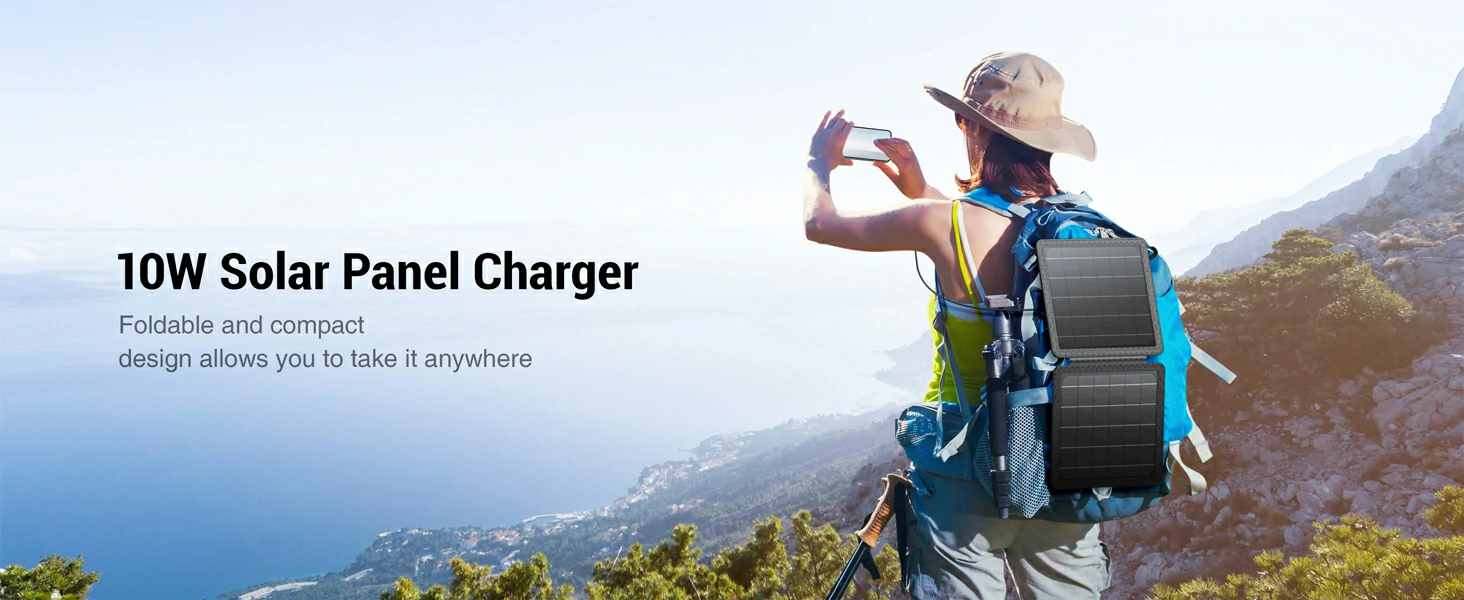10W Portable Solar Panel Small Foldable Solar Charger Compatible with Cell Phone Tablet IPX4 Waterproof for Outdoor Camping
