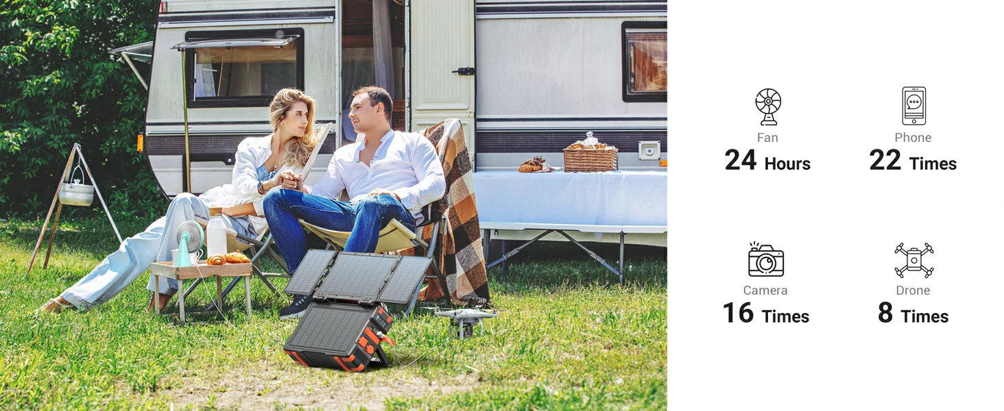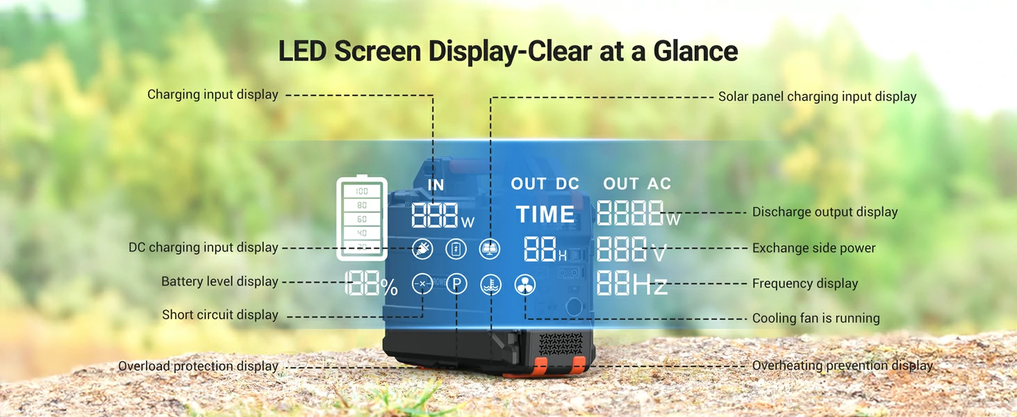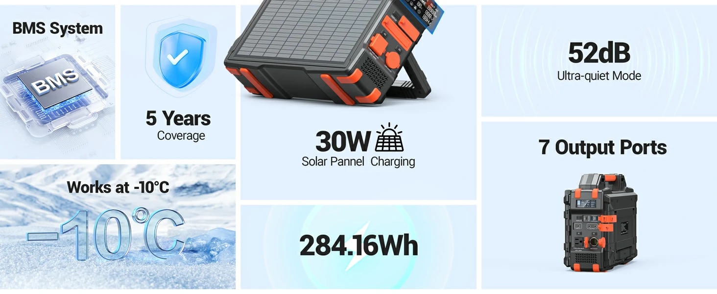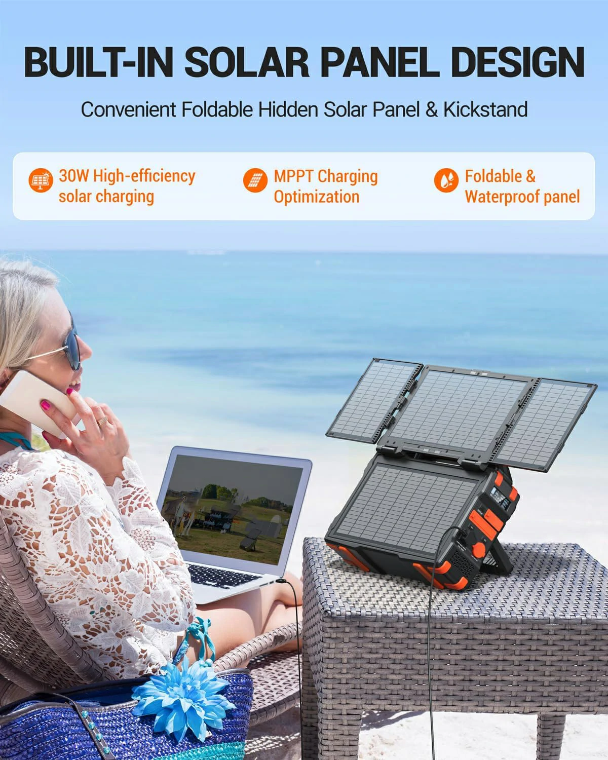 Built-in 30W Solar Panel, Pure Sine Wave, MPPT Charging