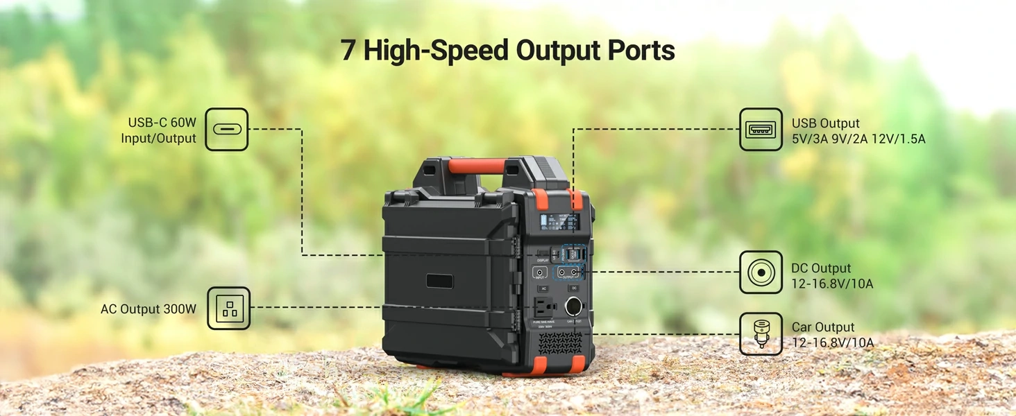 USB-C, USB-A, Car Charging, DC Port, AC Outlet 110V/220V