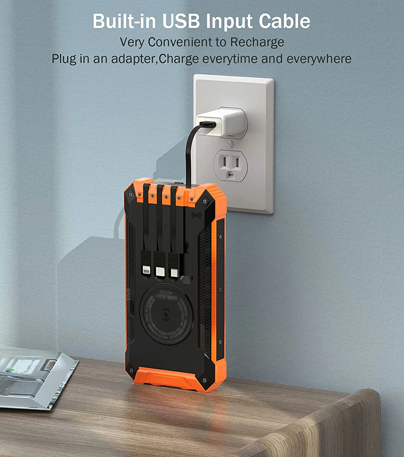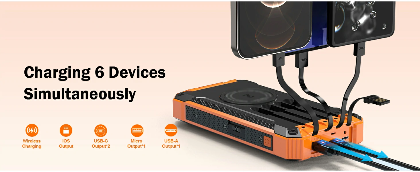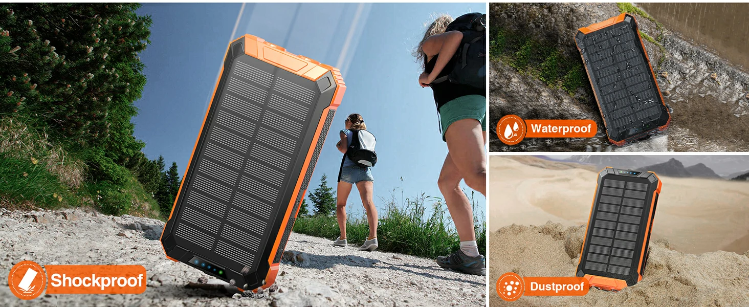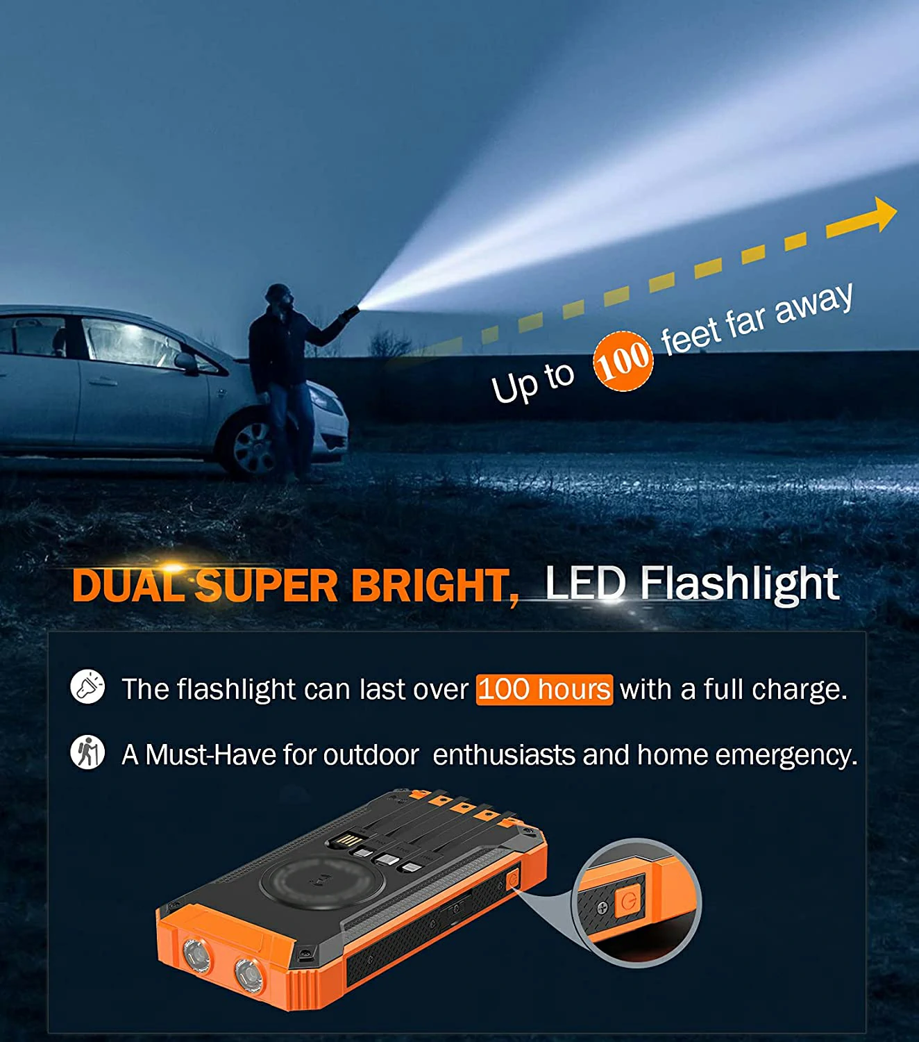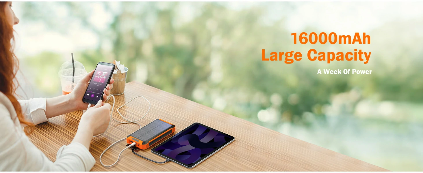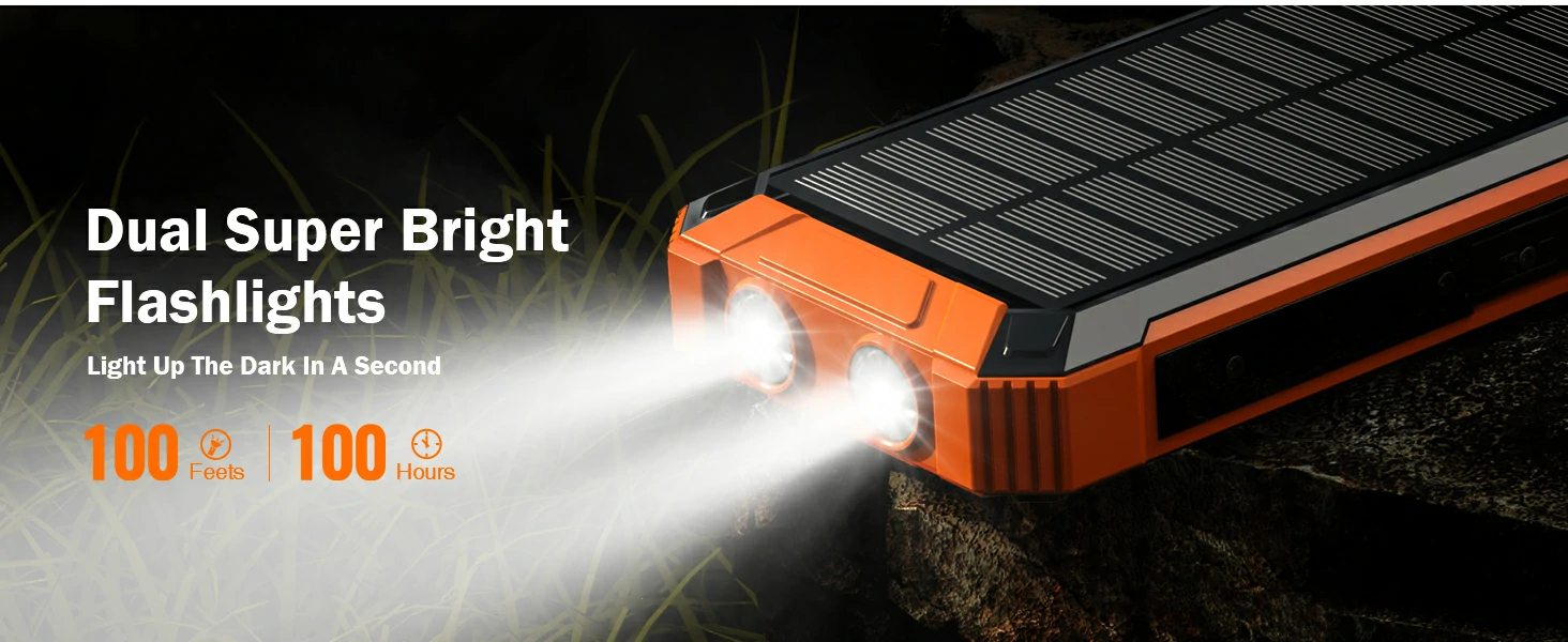 16,000mAh Solar Power Bank Portable Wireless Charger for Phone Dual Flashlights for Outdoor Battery Pack