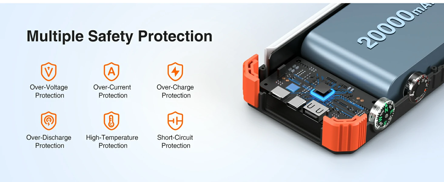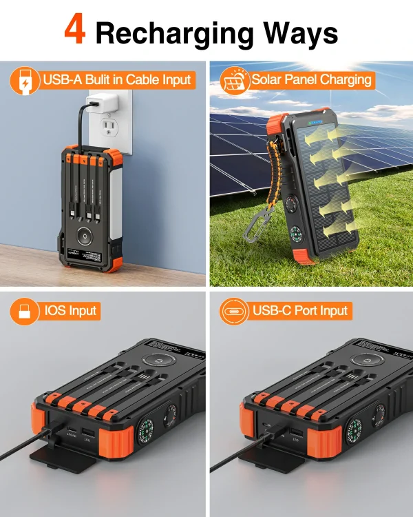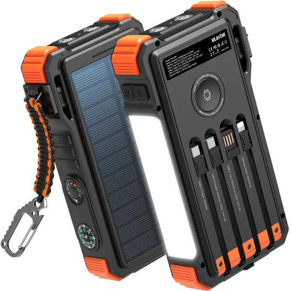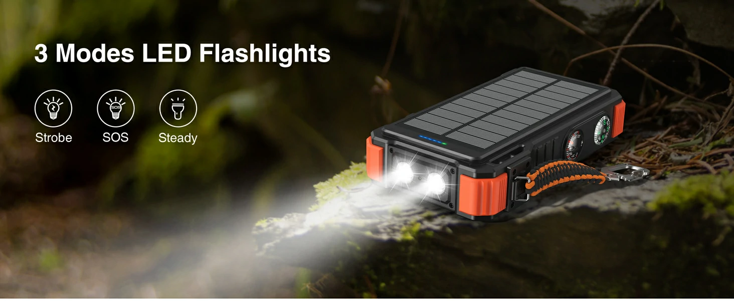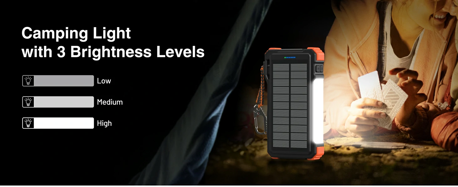 20,000mAh Solar Power Bank PD20W Fast Charging with Wireless Charger for Watch Emergency LED Camping Light Outdoor