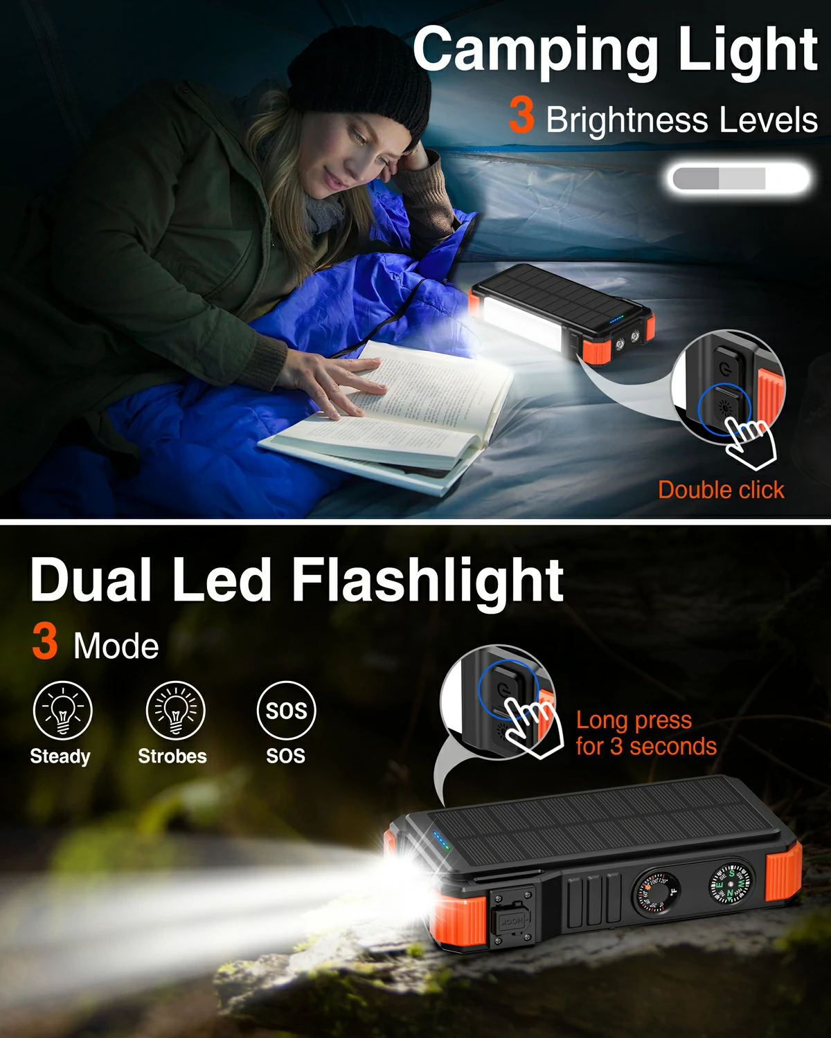 Wireless Charger for Watch, LED Light, Camping Light, Red Indicator Light, Compass, Themometer