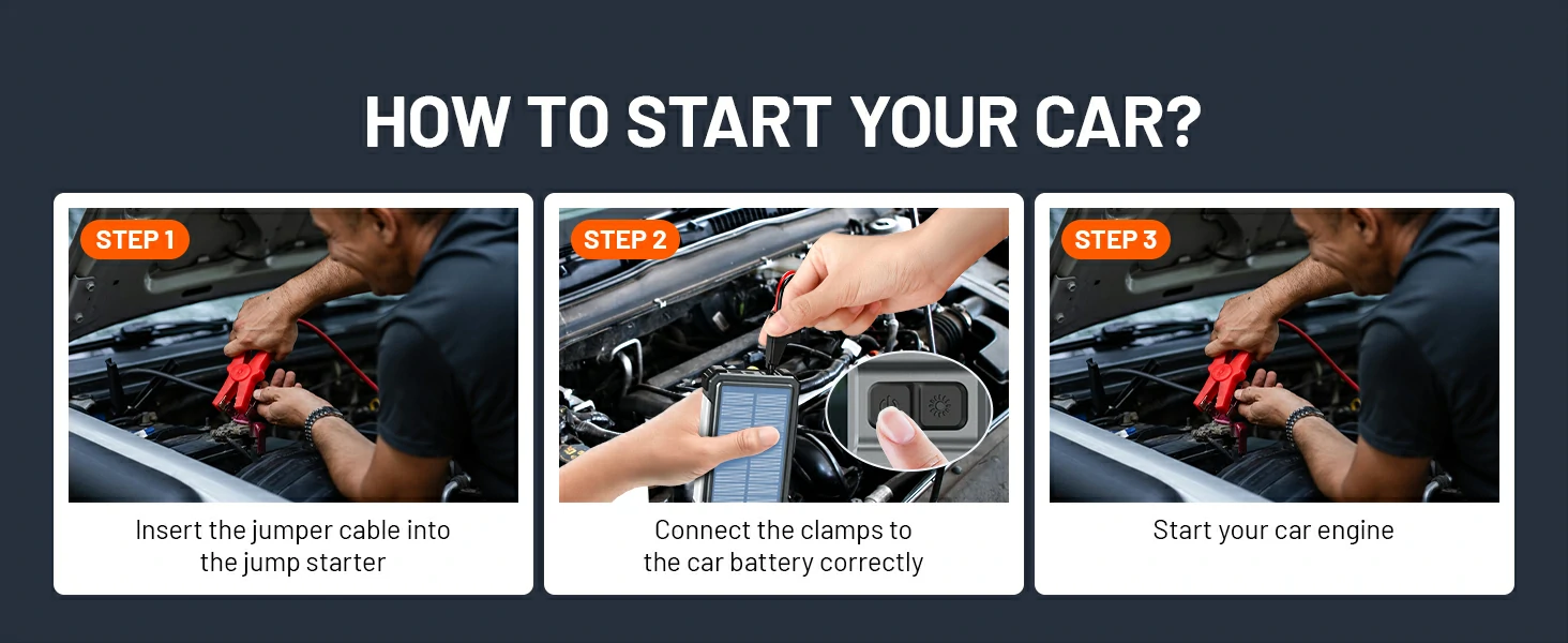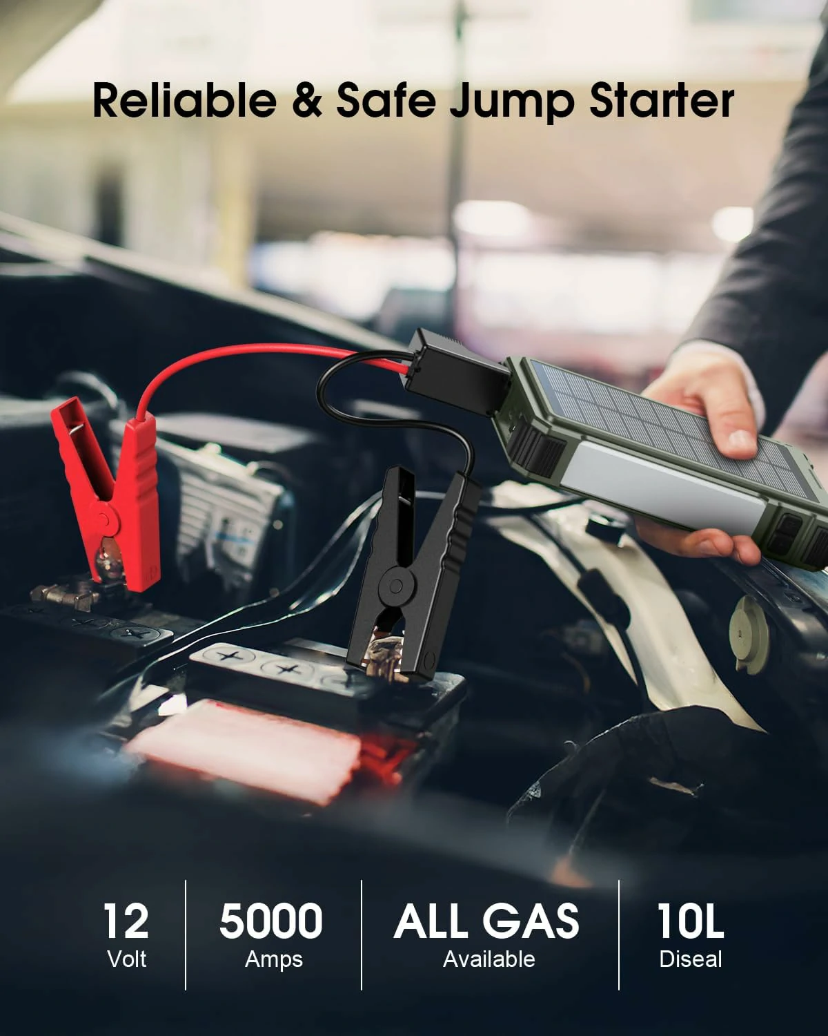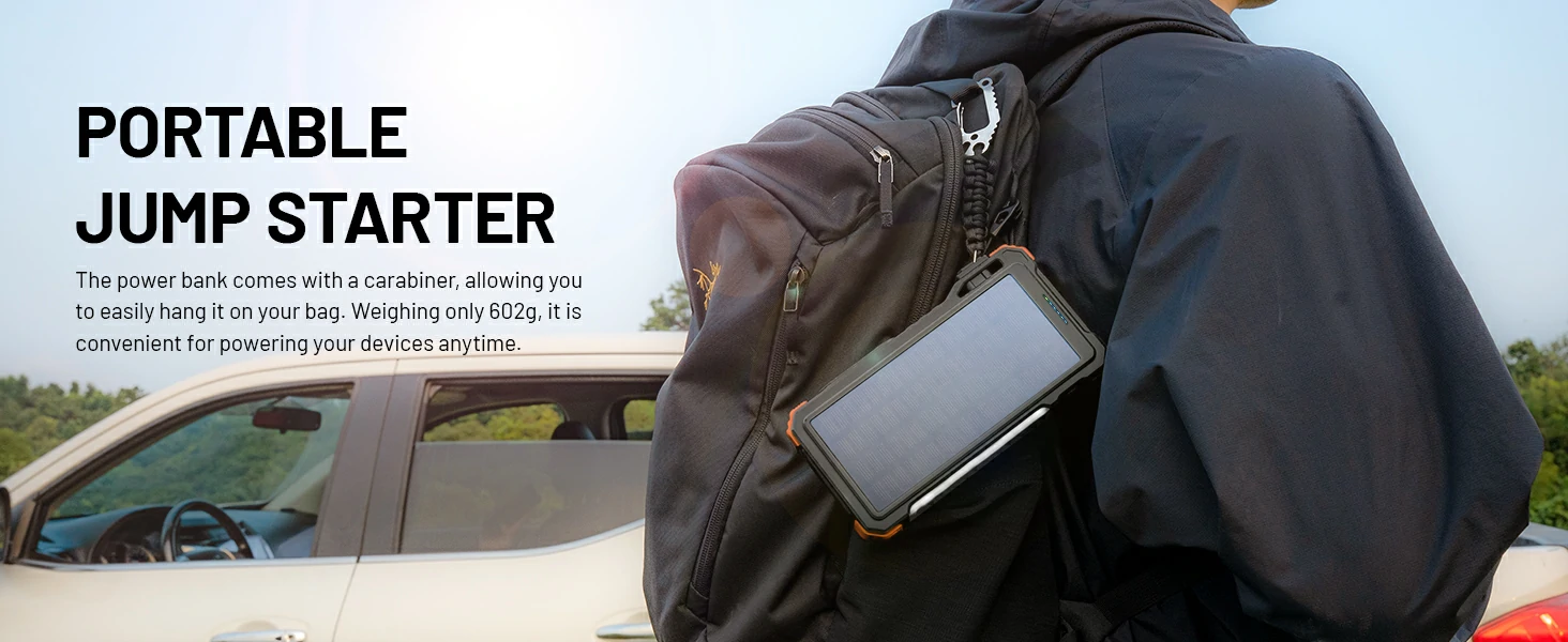 12,000mAh Solar Jump Starter Portable Solar Charger 5000A Peak 12V Car Battery Jump Starter for Up to 10.0L Gas & 6.0L Diesel Engines Car Essentials